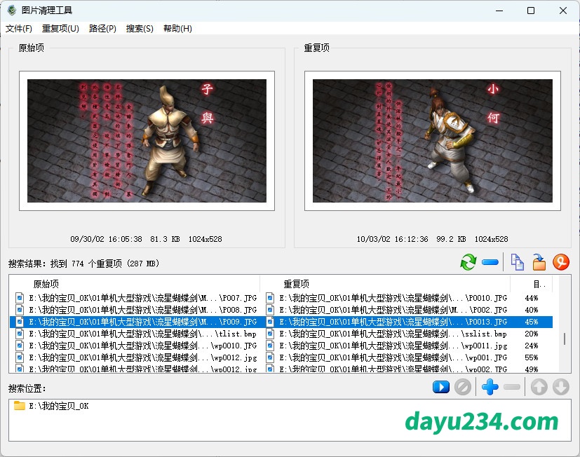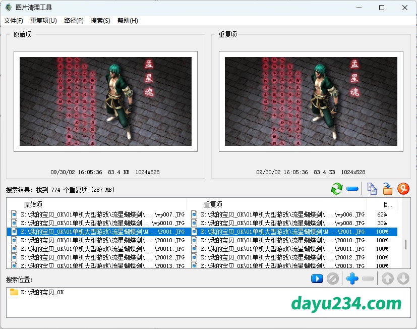 《重复图片清理工具 Duplicate Photo Finder》是一款功能强大且实用的电脑重复照片、相似图片清理软件,支持自定义多个路径,可以快速搜索你指定的目录,扫描出重复的照片,并将两个图片显示出来,再借助本工具进行清理。是一款非常实用的重复照片清理工具,该软件不仅可以帮助用户找到可能存储在硬盘不同目录中的相同大照片,而且还为用户提供了各种有效管理它们的选项。