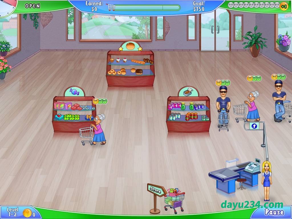 纯美式风格的画风制造了轻松的游戏氛围,而一旦玩起来就没那么轻松了,因为整个游戏过程根本停不下来,补货、收银等行为要配合的天衣无缝才能让客人达到全满意,当升级到特色食品出现、超市扩建,停不下来的感觉将会更加明显。