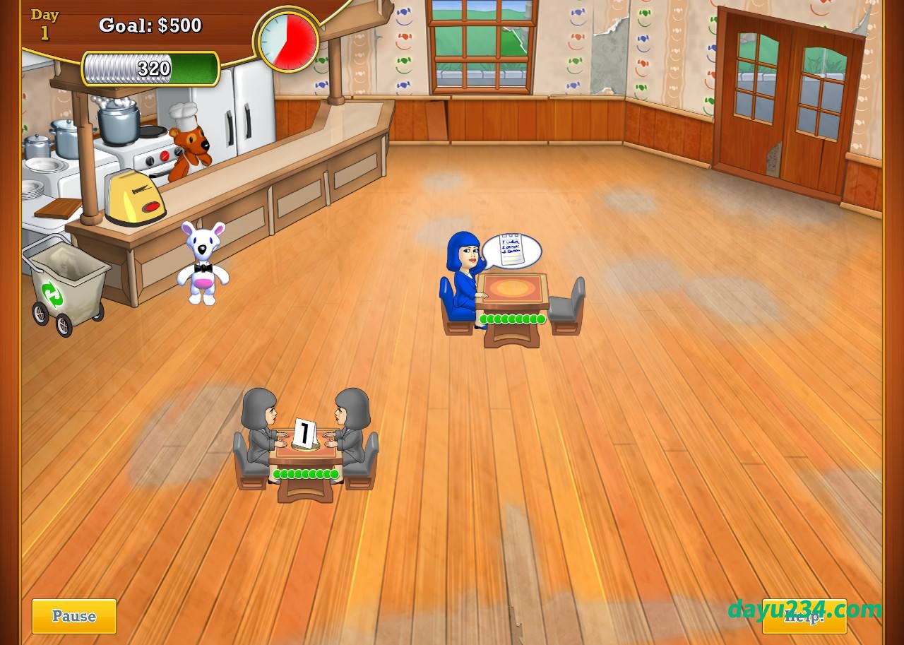 与许多经典的时间管理类游戏一样,你需要将客人带到位子上,记录点的菜、上菜、收拾盘子等等,但它最有创意的在于加入了顾客和椅子颜色的对应,将顾客放在相同颜色的椅子上能够获得额外分数,一把椅子放置多次的同样颜色的顾客会累加倍数。